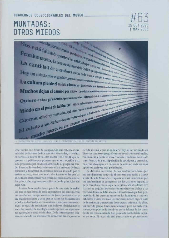 Datos básicos Imagen Datos técnicos Uso público / privado Público Thumbnail (100x100): /database/sites/default/files/styles/thumbnail/public/2025-10/WhatsApp%20Image%202025-10-22%20at%2012.57.22_0.jpeg?itok=wS3nDd7fMedium (220x220): /database/sites/default/files/styles/medium/public/2025-10/WhatsApp%20Image%202025-10-22%20at%2012.57.22_0.jpeg?itok=WbE5Bs81Grande (1000x1000): /database/sites/default/files/styles/large/public/2025-10/WhatsApp%20Image%202025-10-22%20at%2012.57.22_0.jpeg?itok=inoI2WRI Publicaciones relacionadas: Título Año Categoría Publicación Tipología Publicación Cuadernos coleccionables del museo # 63. 15 oct 2025 - 1 mar 2026. Muntadas: Otros miedos Opúsculo Revista